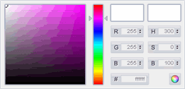 enter the color values. Alternatively, drag the spectrum arrows up/down and click-and-drag the mouse pointer around the shaded box to the desired shade (you must click-and-drag, not just click the desired shade). |