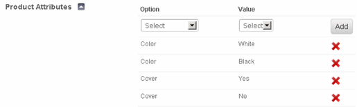 The options for Product Attributes are limited only by your product line and imagination. In addition to obvious attributes like color and size, you could also create an attribute that requires only a Yes or No option. For example, you sell turntables with or without a cover. In this case, add an Option called "Cover" with two Values - "Yes" and "No":