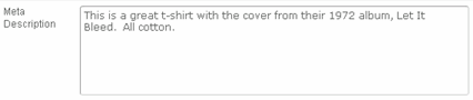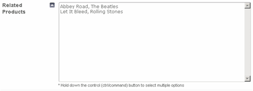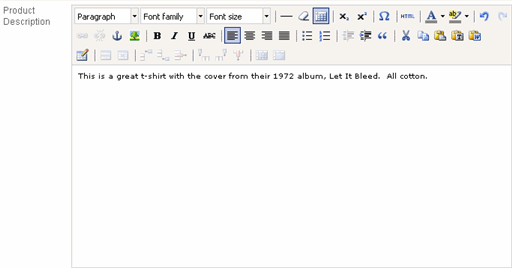Related Products allow you to display other products related to the product the customer is viewing. In our running example, we're adding a product called Rolling Stones T-Shirt. Since our store also sells Rolling Stones CDs, we can connect the two here. |