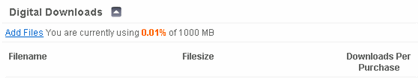 Were this product a digital-only product (for example, your store sells MP3s or digital photographs) or a physical product that includes a digital option, then you can upload that file here. Once uploaded, customers who purchase the product will be allowed to download the file after checkout. Please note that there is currently a 1 GB (or 1000 MB) limit for your digital downloads account. Click Add Files to open the file manager.