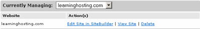Once fully activated, you should see the Edit Site in SiteBuilder, View Site, and Delete links become activeEdit My Website and Delete links: